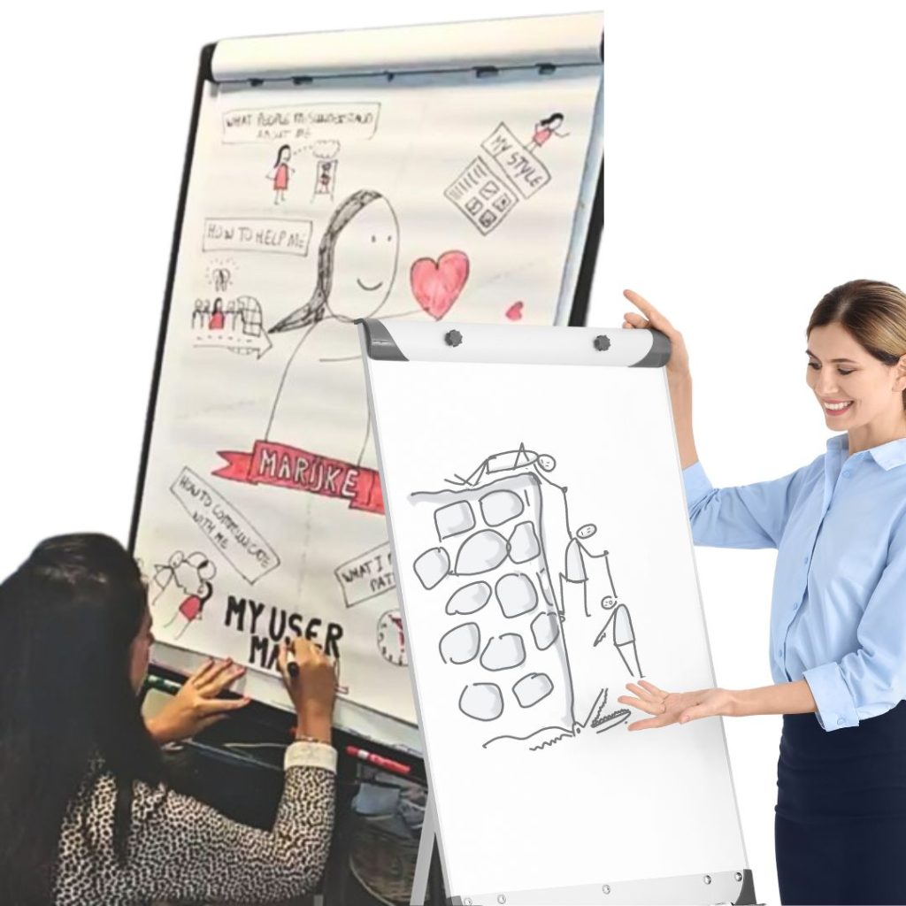 It is a Non Powerpoint based business communication using Hand Drawn Visuals on Flipovers, Projectors or on Digital tablets.