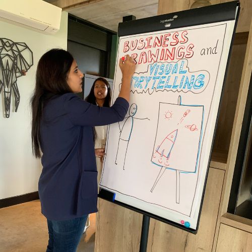 This 2-day immersive experience brings together forward-thinking professionals to explore sketchnoting, storyboarding, visual metaphors, and facilitation games.